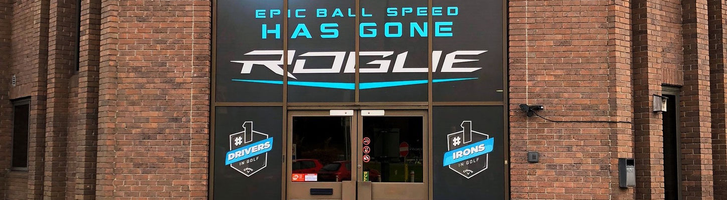 This well known Golfing company would have several launches throughout the year. Working alongside Callaway's in house team, various products were required on different medias. I worked on several aspects of these, in particular I undertook the Callaway Head Quarters Contravision Window graphic. This was made up of 10 panels with a bold, eye catching design.